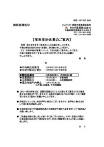 年末年始休業2022年12月